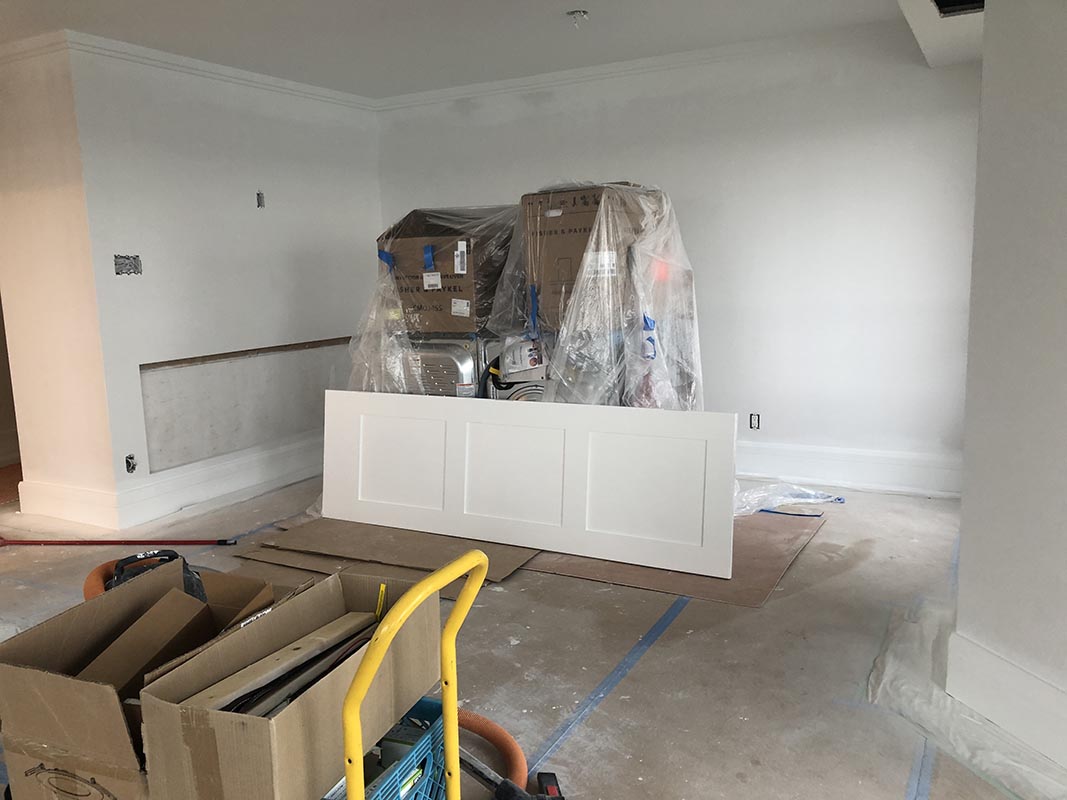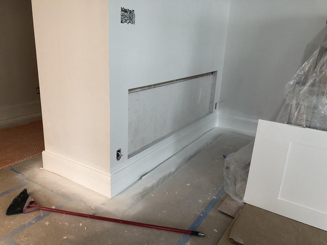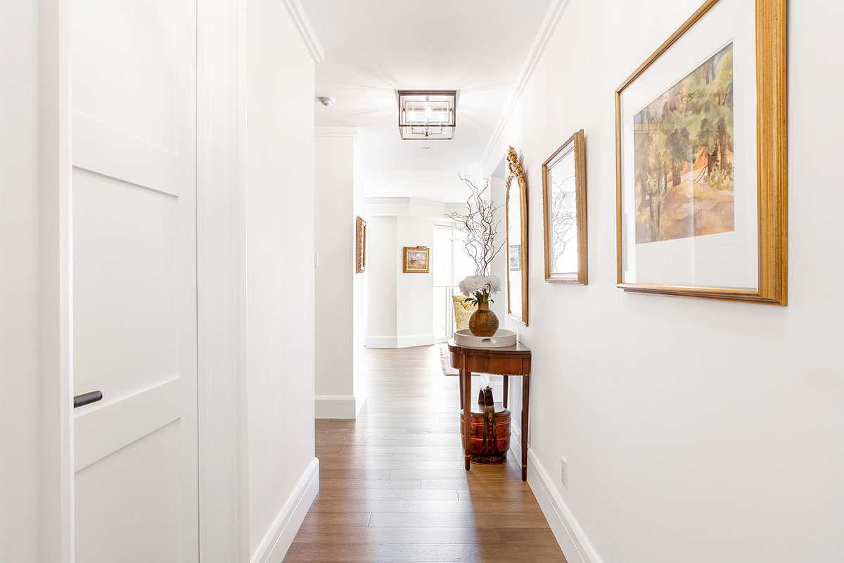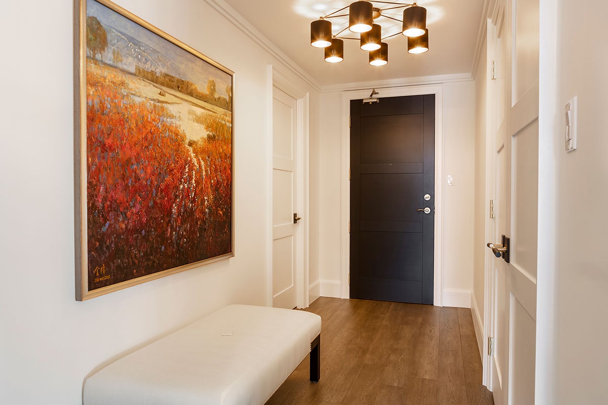 After thirty years of use and several owners, this condo had seen better days. It was time for a complete renovation. New kitchen, two new bathrooms, all new flooring throughout, new baseboards, heightened internal doors with 3 panel Shaker profile, new lighting, appliances - the list was extensive.