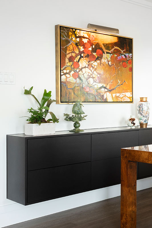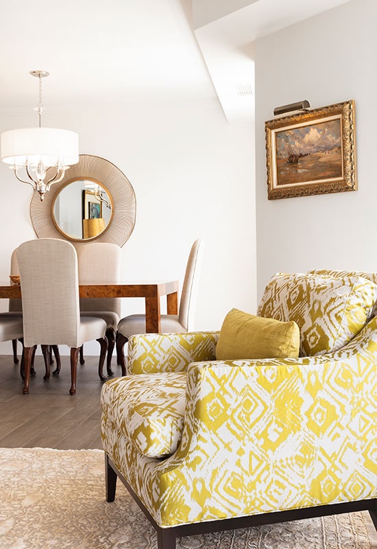 Upgrades included remote Sunscreen blinds to protect from the sun’s heat and fading UV rays. Custom floating sideboard /bar in the dining area. A distinctive mirror on the dining wall, to reflect the light and increase the feeling of spaciousness. Everything chosen with artful intentions and longevity in design. The investment on the purchase price and upgrades in this revamp has paid off. Not only do the clients thoroughly enjoy their space, but the value quickly surpassed investment.